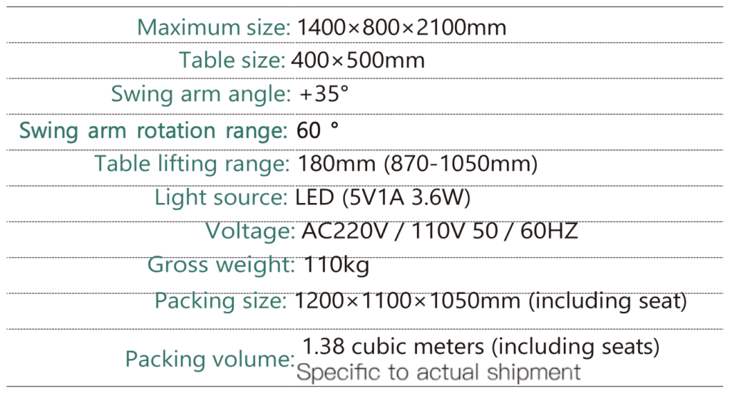 - The table material is made of high-density coated film, which can be lifted electrically.