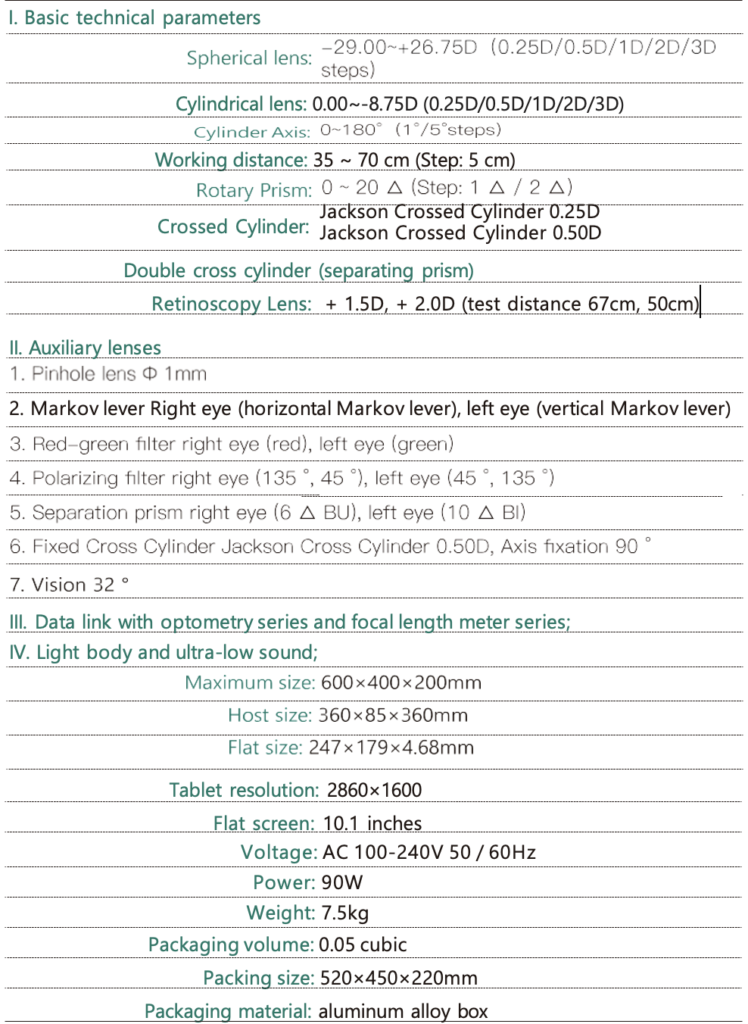 - Dual cross cylinder lens as well as Jackson cross cylinder lens supports highly accurate exams over astigmatism axis and visual acuity. Improved speed of lens movement prevents accommodation interfering exam and guarantees accurate astigmatic exam.