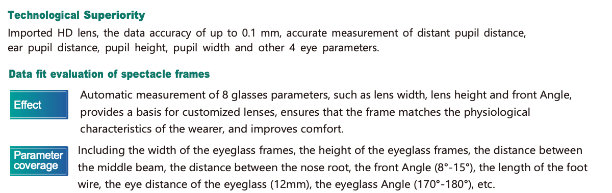 1. The traditional method of optometry and glass fitting cannot measure the complete eye biometric data of the wearer. If the lens, frame, and face are not properly fitted, it may cause eye fatigue.