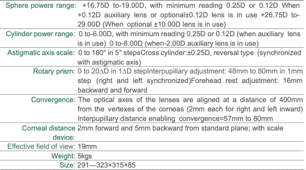• Cleverly designed to operate the cross cylinder. Supplementary fittings are supplied for nearsight Clear scale, convenient and durable operating .