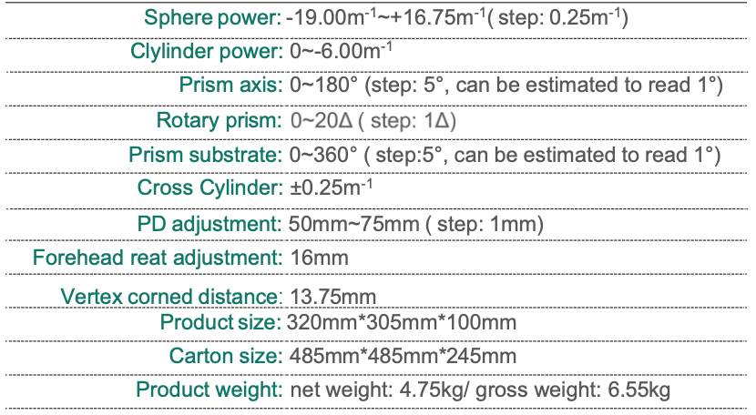 • Comprehensive review visual function, measurement is accurate, convenient